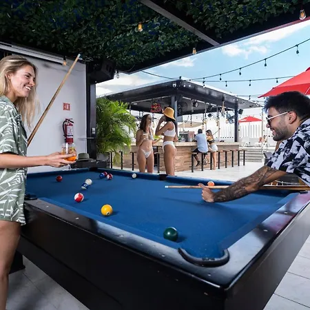 4つ星Nomads Party Hotel カンクンはカンクンに位置し、イスラ・ブランカから徒歩で25分です。屋上プールを提供しています。
